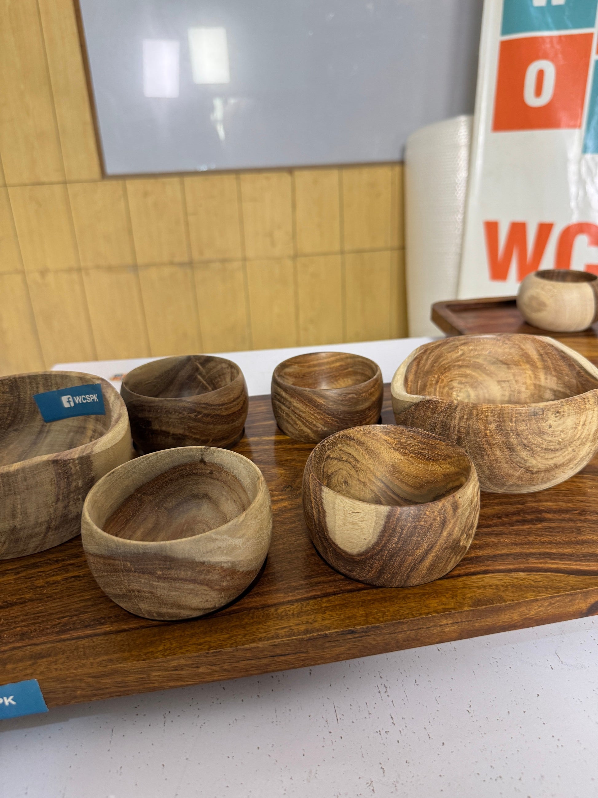 Hand wash only: use warm soapy water and wipe — do not soak, do not place in dishwasher. For example, one acacia serving set description states: “Acacia wood is not safe for dishwasher or microwave use. Simply hand wash … and let it air dry”